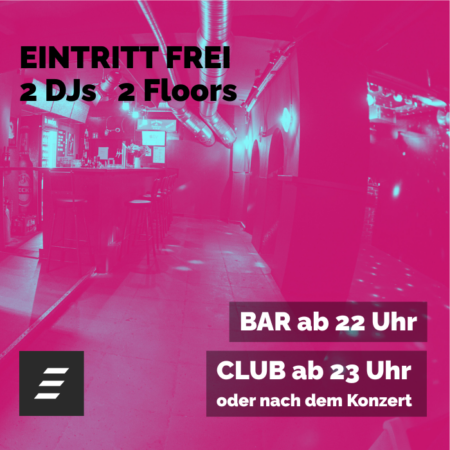 Unten öffnet die Bar bereits ab 22:00 Uhr und wie immer: EINTRITT FREI.